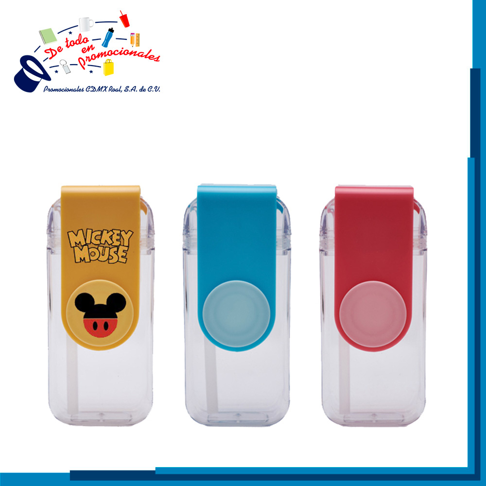 Cilindro de plástico transparente con diseño en forma de cajita para jugo. Cuenta con asa giratoria en color pastel, la cual al deslizarse hacia un lado permite que se expulse el popote. Al regresar el asa a la posición vertical, el popote vuelve a colocarse en su lugar. El popote es de silicón, no tóxico. La tapa sella a presión y cuenta con seguro para líquidos. CAP. 280 ml. Presentación: caja en color blanco.