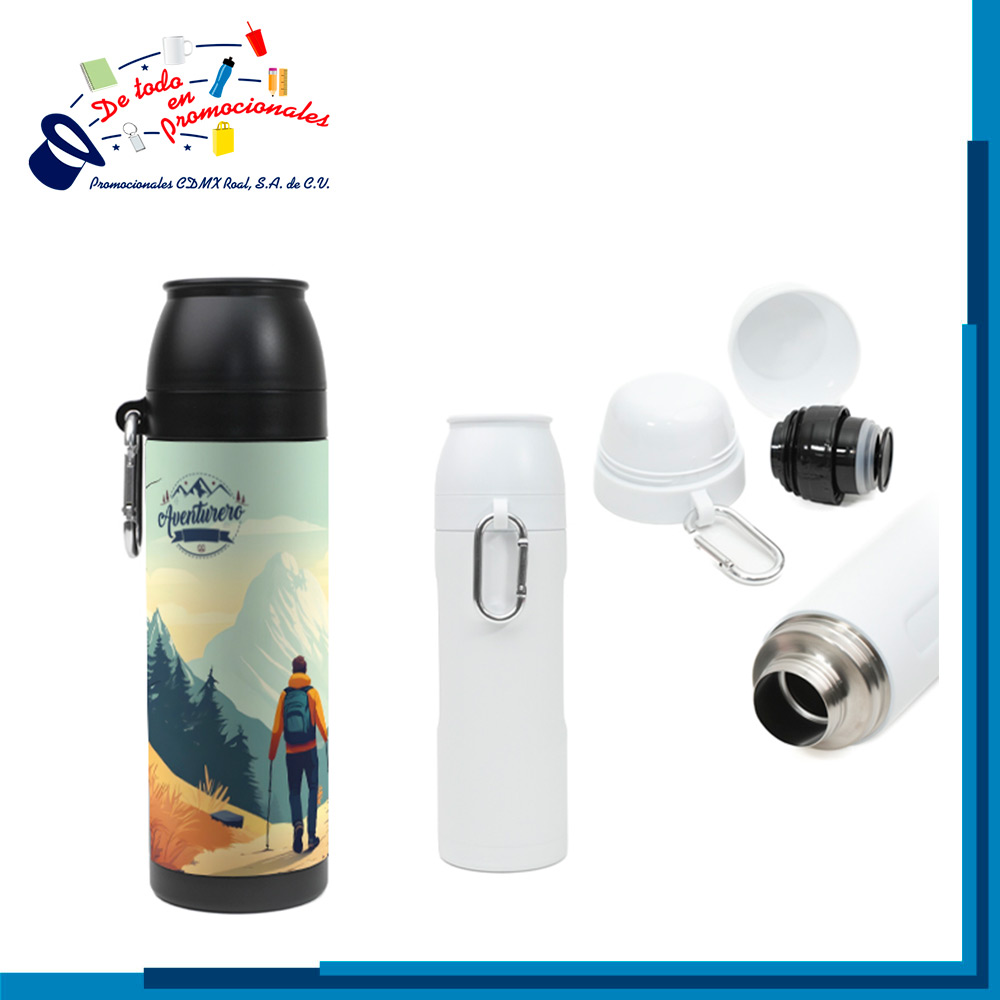 Termo de acero inoxidable de doble pared insulado al alto vacío, permite conservar por más tiempo las bebidas calientes o frías; cuenta con dos tapas de plástico, que se pueden usar como vasos para beber, un gancho mosquetón desmontable para colgarse en cualquier mochila y transportarlo fácilmente. Tiene una boquilla anti derrames de rosca, para facilitar el uso, el llenado y limpieza del termo, funciona presionando al centro para abrir o cerrar el mismo. Es ideal para actividades al aire libre. CAP. 750 ml. Presentación: caja individual.