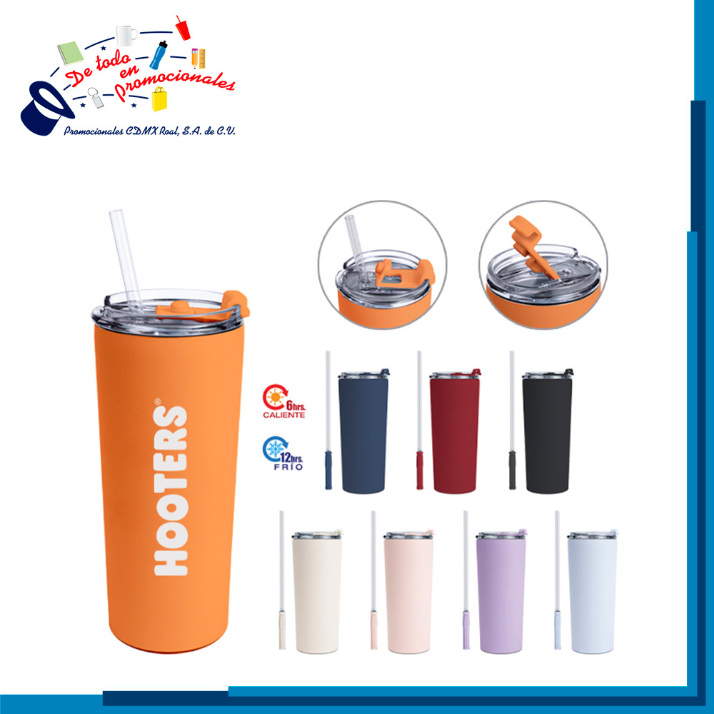 Termo de doble pared de acero inoxidable insulado al alto vacío, con acabado en polvo plástico y base anti derrapante; mantiene bebidas frías por 12 hrs. y calientes por 6 hrs. Cuenta con tapa transparente anti fugas con cierre de rosca, entrada grande para bebidas calientes y entrada para popote para bebidas frías, ambas con seguro a presión para evitar derrames. CAP. 600 ML. Presentación: caja negra.