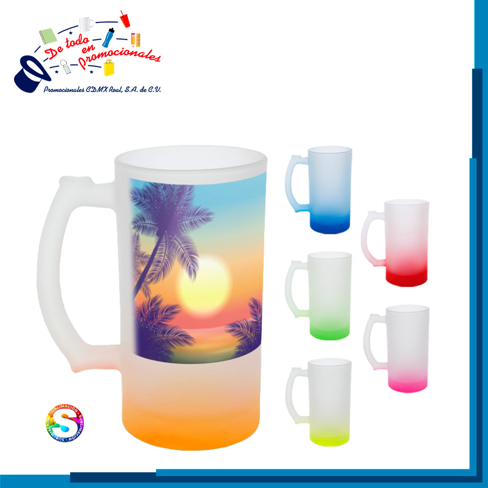 Tarro de vidrio satinado para sublimación, con basse de color. CAP. 470 ML. (16 OZ).