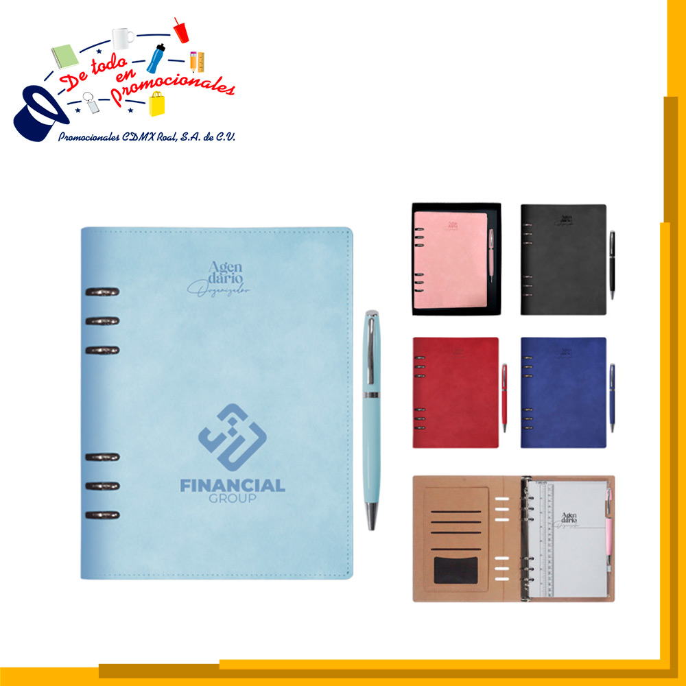 Carpeta tipo agendario organizador de pasta rígida de 6 arillos de metal, su cubierta cuenta en la parte interna con 4 compartimentos para credenciales, uno con ventana plástica, sujetador para bolígrafo. Contiene 96 hojas en total (192 pág.): Hoja de dedicatoria, hoja de datos de contacto, calendarios del 2025 al 2028, planificadores anuales (4), planificadores de gastos (4), planificadores de proyectos (5), hojas rayadas y hojas punteadas para notas. Incluye: regla de 20 cm, bolsa de PVC con cierre a presión y bolígrafo de aluminio acabado brillante con detalles en cromo. Puedes adquirir el repuesto Parker en tinta azul para este bolígrafo. Presentación: Caja en color negro.