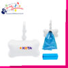 Toalla de algodón con estuche cilindrico de plástico traslúcido.