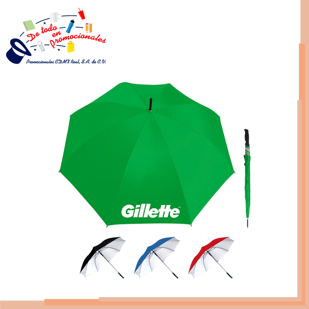 Paraguas con forro de protección UV, botón de apertura automático, varillas y eje de metal reforzado, mango de plástico ergonómico. 8 gajos.