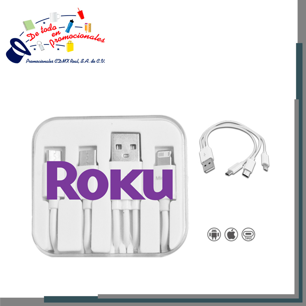 Cable conector USB con adaptador dúo, para iPhone y Android, así como tipo C. (Sujeto a compatibilidad a equipos telefonicos).